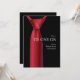 Una tarjeta de solicitud de padrino elegante que presenta una corbata roja, con un nudo Windsor, contra una camisa negra. (Vctz) <br/><br/>La tarjeta es fácil de personalizar con su redacción, fuente, color de fuente y elección de seis tipos de papel.<br/><br/>¿No es exactamente lo que está buscando? Todos nuestros productos pueden ser diseñados a medida para satisfacer sus necesidades sin cargo adicional.<br/><br/>Simplemente contáctenos en askpixieprints@aol.com.<br/><br/>Productos coordinados disponibles: