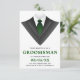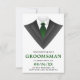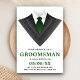 Invite a tus padrinos con esta tarjeta de solicitud moderna que presenta un clásico traje con una corbata verde sobre un fondo blanco. Simplemente agregue los detalles de su evento en esta plantilla fácil de usar para hacer que sea una invitación única. Voltee la tarjeta para revelar un patrón de rayas negras y blancas en la parte posterior de la tarjeta.