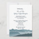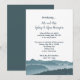 Invitaciones de recepción de montañas brumosas en colores azul oscuro. Una cordillera en el borde inferior de las tarjetas blancas y el texto con tipografía personalizada es fácil de personalizar. Anuncie una boda y ponga los nombres de los recién casados en la parte superior debajo del texto "presentamos". Utilice el párrafo de la invitación para incluir información sobre la ceremonia e invite a los invitados a la celebración de la recepción. El reverso es azul verdoso oscuro.