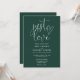 Esta invitación a la boda de guion verde esmeralda minimalista elegante puede ser personalizada con su información en tipografía de moda con los detalles de su sitio web boda y su código QR al revés. Diseñado por Thisisnotme©
