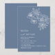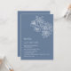 Esta elegante invitación de boda contemporánea presenta flores de arte de línea blanca y escritura blanca sobre un fondo azul polvo.