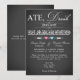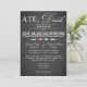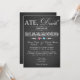 Esta invitación de recepción de boda posterior al evento con estilo vintage en pizarra de tiza negra y blanca LOOK tiene una variedad de fuentes con rollos y corazones rosados y azules. Tiene una nueva interpretación divertida de la tendencia "Comer, Beber y Casarse", con un pequeño juego de palabras que dice "Comí, bebí y me casé" para reflejar el evento de boda anterior. Se muestra aquí en papel básico. Se personaliza fácilmente con su propia información. Hay algo de texto personalizable que puede editar de la manera que requiera. TAMBIÉN tenga en cuenta que todo se imprimirá tal como aparece en su monitor. Zazzle no editará nada por errores tipográficos o desalineaciones, etc., y yo no lo veré una vez que haya realizado el pedido. Si necesita ayuda con su redacción, por favor envíeme un correo electrónico ANTES de realizar el pedido. Si hay algún otro artículo que necesite para hacer que su