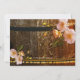 Una invitación de recepción de boda temática de vino, posterior o después de la boda con un diseño romántico con uvas, rosas de color melocotón y luces de cuerda festivas en un fondo de barril de vino de madera dorada. Hermoso para una celebración en una bodega o viñedo. Esta invitación es parte de una colección de bodas.