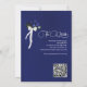 Esta romántica invitación a la boda se caracteriza por un único rosa de color azul marino oscuro y de tallo largo sobre su lado, reflejado en una piscina de agua. El encabezamiento está escrito en elegantes letras y dice: Nothing Fancy, Just love. El hotel cuenta con un ramo de rosas con un arco de satén blanco y un espacio para los detalles de los bodas, incluido un código QR donde sus huéspedes pueden obtener más información y/o RSVP online. Esta invitación es una maravillosa combinación de lo moderno y lo atemporal, una manera perfecta de invitar a tus amigos y familias a compartir tu alegría en tu día especial.