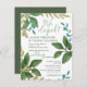Anuncio de fuga - Invitación a la recepción: Hojas de té de acuarela pintadas a mano con vegetación de jardín botánico. Tipografía moderna de moda con campos de plantilla de edición fácil. La elección de la fuente, el diseño y los colores se pueden modificar según el estilo y el gusto.