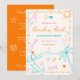 ¡Planifica una despedida de soltera inolvidable! Este diseño de invitación presenta encantadoras ilustraciones de playa dibujadas a mano y una fuente manuscrita juguetona en una paleta de colores naranja de ola de calor. Actualice fácilmente el texto para una celebración única. ¡Perfecto para el fin de semana de chicas!