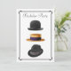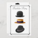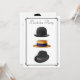 Esta invitación de moda establecerá el ambiente e indicará que es una noche elegante fuera de la ciudad, en lugar de una fiesta de cerveza con jeans azules. Muy masculino, muy elegante. Cuenta con un elegante sombrero hongo negro, un fedora trilby negro con banda gris y un sombrero de paja con banda negra con un borde negro simple art déco. En la parte posterior está otro sombrero fedora con una banda blanca. Simplemente complete los espacios con la información de su fiesta y haga los cambios necesarios. -- Ver descuentos por compras al por mayor. Incluye sobres.