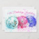 Este diseño de 55 años de fiesta incluye tres sombrillas de copas tropicales acuáticas en verde azulado, rosa y morado en la parte delantera. Todos los detalles del fiesta están en la parte de atrás. Personalice los campos de texto de la plantilla con su información en la parte frontal y posterior.