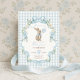 Celebrate your little one’s first birthday using our charming bunny-themed invitation! Featuring a whimsical watercolor bunny holding a blue balloon, florals, and soft pastel gingham background, this invitation is perfect for a sweet celebration. The elegant yet whimsical design is ideal for spring birthdays, garden parties, or any cheerful first birthday gathering.