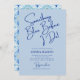 Celebrate your bride-to-be with this coastal “Something Blue Before I Do” bridal shower invitation inspired by the charm of the Amalfi Coast. A soft dusty-blue background pairs beautifully with deep cobalt lettering and handwriting-style script, while the reverse features the signature Mediterranean tile pattern for a cohesive seaside look. Perfect for coastal, beach, and Mediterranean-inspired bridal showers.