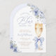 Celebrate the bride-to-be with this Brunch and Bubbly Blue Bridal Shower Invitation, featuring soft dusty blue watercolor florals and a dainty blue bow tied around a golden champagne glass. This unique design blends romantic botanical elements with a touch of sparkle, perfect for a chic spring or summer celebration. The elegant script adds timeless charm, while the bubbly detail introduces a festive, modern twist. Ideal for a sophisticated bridal shower filled with joy, love, and prosecco.