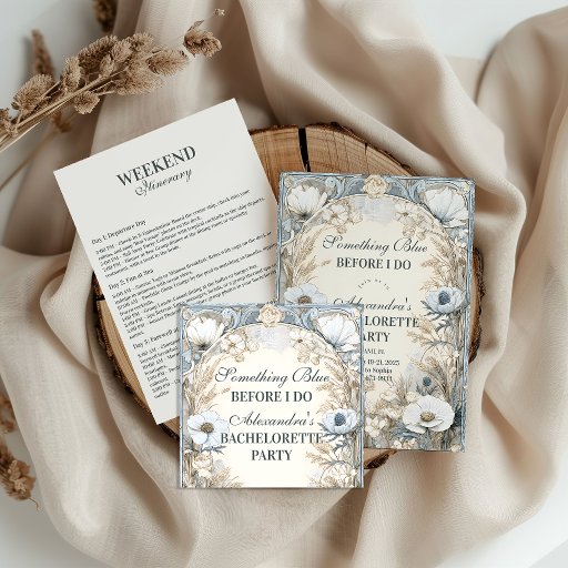A softly romantic “Something Blue” design featuring winter florals, frosted greenery, and delicate neutral blooms. This elegant blue-and-ivory aesthetic is perfect for brides who love a timeless, feminine look with a seasonal touch. Personalize all text to match your event details and create a beautifully cohesive theme for your celebration. A refined choice for winter brides, blue-themed parties, and classic bachelorette weekends.