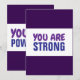 Diseño de dos lados, fuerte de un lado, poderoso del otro. Algunos días, necesitas un extraño para recordarte que tienes esto. Sé ese extraño para una persona que necesita escucharlo. Eres fuerte. Eres poderoso. Empoderar a las personas recordándoles que son fuertes, poderosos, capaces. No todo está perdido. Las cosas no son desahuciadas. No están indefensos. Descripción del diseño: En la parte delantera se lee: "Eres fuerte". Las palabras "Usted es" están en un gran tipo de letra púrpura de todos los mayúsculas en una línea en la parte superior del diseño. La palabra "Fuerte" está debajo de esa en un tipo de letra azul sans serif de todos los mayúsculas. El texto de ambas líneas tiene aproximadamente el mismo ancho en el área de diseño y aproximadamente el mismo alto a pesar de las diferentes fuentes. El texto se centra en un fondo rectangular blanco. Debajo hay un color de fondo morado oscuro. La parte trasera dice: "Eres poderoso". El mismo diseño que el frontal, de tamaño ligeramente diferente porque "poderoso" es una palabra más larga que fuerte. El texto son plantillas, y se pueden añadir colores personalizares, fuentes, etc.