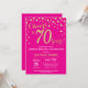 Invitación Sonido 70 cumpleaños de color rosa caliente y dora
