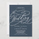 Esta clásica y oscura invitación a la boda de la marina de otoño de la colección Sophia es perfecta para un simple boda. El moderno diseño clásico presenta vistosos remolinos y florituras con una preciosa y elegante tipografía con letras a mano.