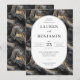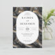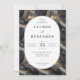 This elegant wedding invitation features a luxurious marbled background with swirling dark gray, black, and gold tones that create a sophisticated, fluid appearance. The central oval panel is clean and white, providing a striking contrast to the dynamic backdrop, while classic serif fonts add a touch of timeless elegance. Customizable text fields are thoughtfully arranged in a balanced layout, ensuring readability and focus on key details. Perfect for formal celebrations, this design exudes sophistication and anticipation, making it ideal for those seeking a modern yet traditional aesthetic for their special day.