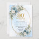 Invitación Sophisticated Bohemian Blue Floral Gold 90th Bday