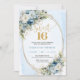 Invitación Sophisticated Dusty Blue Gold Sweet Sixteen Invite