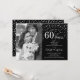 Sorprende Invitación 60º Aniversario de Boda con Foto. Diseño elegante en negro y plata con letra script y confeti. Se puede personalizar para mostrar cualquier año de casados. ¡Salud por 60 años!