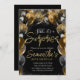 Invitación Sorprende globos Purpurina de oro negro de cumplea
