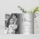 Sorpresa Invitación 10º Aniversario de Boda con Foto. Diseño elegante en plata con letra script y confeti. Se puede personalizar para mostrar cualquier año de casados. ¡Salud por 10 años!