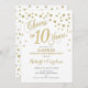 Diseño elegante en blanco y dorado falso con confeti y letra script. ¡Salud por 10 Años! Perfecto para una fiesta con estilo. Envíame un mensaje si necesitas un año personalizado.