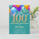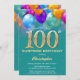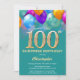 Sorpresa 100 cumpleaños Verde azulado y oro Colorful Globos e Invitación Confetti. Para una mayor personalización, haga clic en el botón "Personalizar" y utilice nuestra herramienta de diseño para modificar esta plantilla.