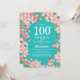 Sorpresa 100 años Flores Florales Rosadas invitan al cumpleaños Verde azulado. Para una mayor personalización, haga clic en el botón "Personalizar" y utilice nuestra herramienta de diseño para modificar esta plantilla.