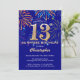 Sorpresa 13 cumpleaños Invitación a fuegos artificiales de la Marina Azul y Oro Arcoiris. Para una mayor personalización, haga clic en el botón "Personalizar" y utilice nuestra herramienta de diseño para modificar esta plantilla.