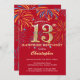 Sorpresa 13 cumpleaños Invitación a fuegos artificiales de arcoiris de oro y rojo. Para una mayor personalización, haga clic en el botón "Personalizar" y utilice nuestra herramienta de diseño para modificar esta plantilla.