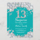 Invitación Sorpresa 13 cumpleaños Verde azulado y diamante pl