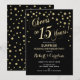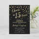 Diseño elegante en negro y oro falso con confeti y letra script. ¡Salud por 15 Años! Perfecto para una fiesta con estilo. Mensajeame si necesitas un año personalizado.