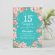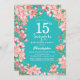 Sorpresa 15 Años Flores Florales Rosadas Invitación Verde azulada de cumpleaños. Para una mayor personalización, haga clic en el botón "Personalizar" y utilice nuestra herramienta de diseño para modificar esta plantilla.
