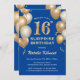 Invitación Sorpresa 16.º Balón Azul y Oro de cumpleaños