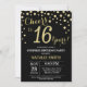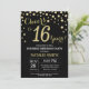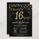 Invitación Sorpresa 16° cumpleaños Diamante negro y oro