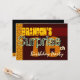 Este diseño de estrellas de oro y chocolate es una manera divertida de invitar a la gente a una fiesta de cumpleaños SORPRESA. Todo el texto es totalmente personalizable. Puede experimentar con diferentes tipos de papel haciendo clic en la pestaña "Opciones de invitación" en la esquina superior derecha. Este diseño se encuentra actualmente en un papel metálico con caseta de hielo que le da a su invitación de cumpleaños un brillo festivo. ¡Encantador!