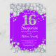 Invitación Sorpresa 16 cumpleaños, morado y diamante plateado