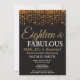 Sorpresa invitación a cumplir 18 años. Dieciocho y fabuloso. Negro y oro. Brillantina dorada. Fiesta de cumpleaños para adultos. Para hombres o mujeres. Para una mayor personalización, haga clic en el botón "Personalizar" y utilice nuestra herramienta de diseño para modificar esta plantilla.