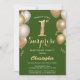 Sorpresa Primer cumpleaños Invitación de los Globos Verde y Oro Confetti. Para una mayor personalización, haga clic en el botón "Personalizar" y utilice nuestra herramienta de diseño para modificar esta plantilla.