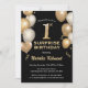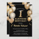 Invitación Sorpresa 1.ᵉʳ cumpleaños Globos de oro y negro