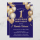Sorpresa Primer cumpleaños Purpurina de la Marina Azul y Oro Globos Invitación al cumpleaños. Para una mayor personalización, haga clic en el botón "Personalizar" y utilice nuestra herramienta de diseño para modificar esta plantilla.