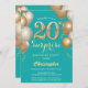 Sorpresa 20 cumpleaños Verde azulado y Globos de Oro Confetti Invitación. Para una mayor personalización, haga clic en el botón "Personalizar" y utilice nuestra herramienta de diseño para modificar esta plantilla.