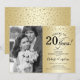 Sorpresa Invitación Aniversario de Bodas 20 con Foto. Diseño elegante en dorado y negro con letra script y confeti. Se puede personalizar para mostrar cualquier año de matrimonio. ¡Salud por 20 años!