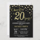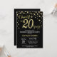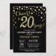 Sorpresa Invitación a los 20 Años con Antecedentes de Diamante Purpurina Negro y Oro. confetti de efecto metalizado dorado. Cumpleaños de adultos. Cumpleaños de hombres o mujeres. Para una mayor personalización, haga clic en el botón "Personalizar" y utilice nuestra herramienta de diseño para modificar esta plantilla.