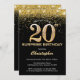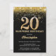 Invitación Sorpresa 20 años Purpurina de oro y negro