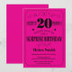 Sorpresa 20 cumpleaños Invitación tipografía negra y rosa caliente. Fondo rosa negro y caliente. Cumpleaños de adultos. Cumpleaños de hombres o mujeres. Invite a un niño o Chica Lady Teen Teenage Bday. 13a 15a 16a 18a 20a 30a 40a 50a 60a 70a 80a 90a 100a. Cualquier edad.