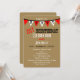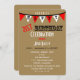 Esta sorpresiva invitación a la fiesta de cumpleaños número 21 muestra la palabra sorpresa en la parte superior de blanco sobre un fondo marrón de cartón. La palabra feliz se escribe en banderas justo debajo con las palabras "Celebración del cumpleaños 21" debajo de las banderas escritas en una tipografía vintage. Puede personalizar todos los detalles de su fiesta sorpresa en la invitación para hacer una gran invitación a un fiesta sorpresa número 21. Copyright henishouseofpaper
