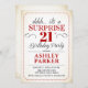 Sorpresa 21ª Invitación de fiesta de cumpleaños. Sencillo diseño elegante en blanco, rojo y negro. Presenta una fuente de script elegante. Celebración sorpresa de cumpleaños para hombre o mujer. ¡Se puede personalizar en cualquier edad!