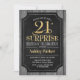 Invitación a la celebración del 21º cumpleaños de una sorpresa rústica. Elegante y elegante diseño en negro, falso dorado purpurina y madera gris. Presenta una fuente de script elegante. Mándame un mensaje si necesitas más personalización.