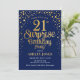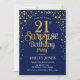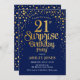 Sorpresa 21ª Invitación de fiesta de cumpleaños. Elegante diseño en marina y falso oro purpurina. Presenta un diseño elegante de tipo de letra y letra de guión. Mándame un mensaje si necesitas edad personalizado.